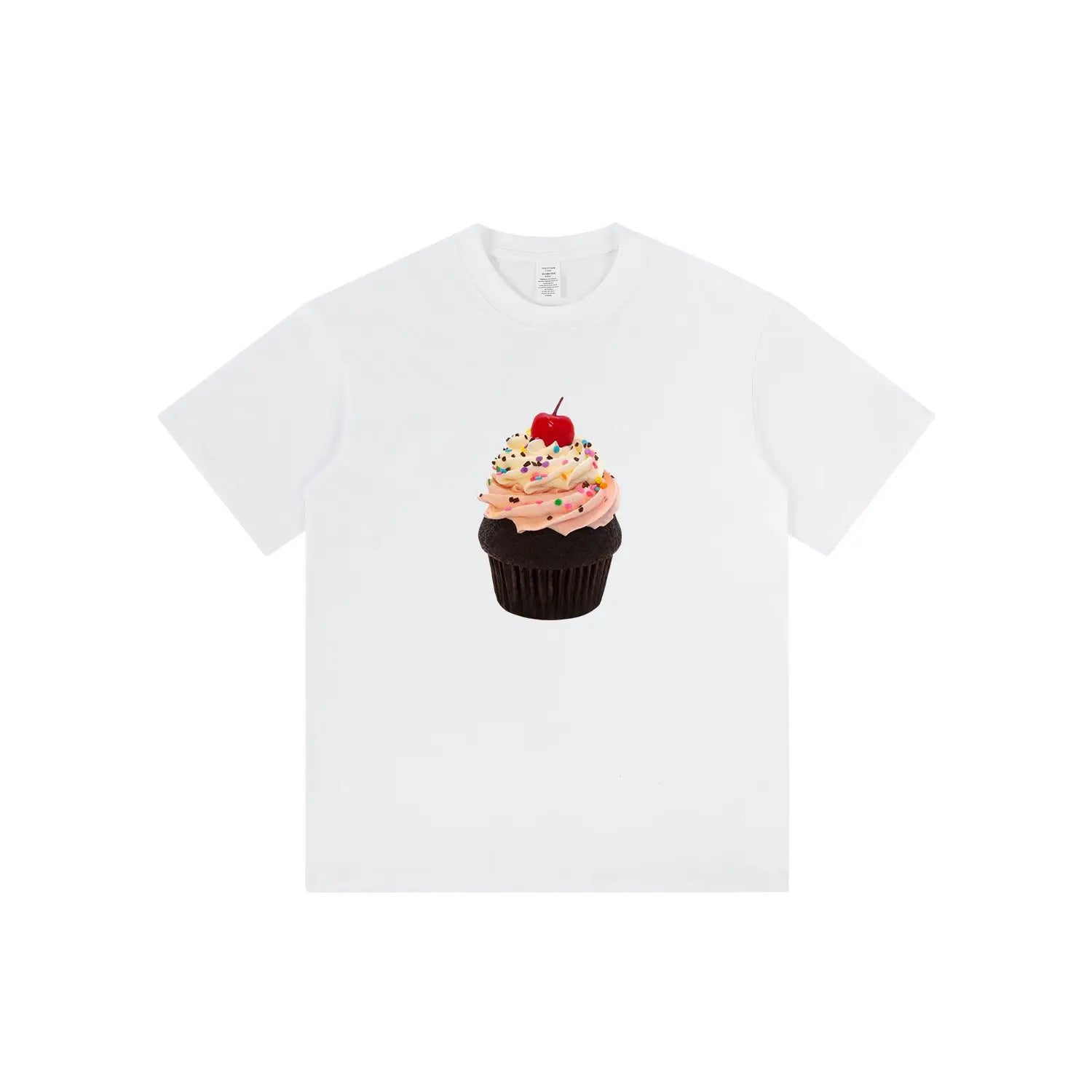 Crafted for incredible softness, ensuring comfort and elegance throughout the day. The bright white canvas perfectly sets off the rich, hyper-realistic colors of the cupcake, making the design truly pop.